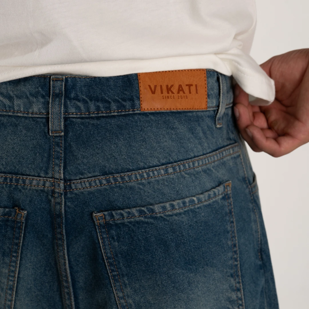 Jean Baggy confeccionado en denim rígido y pesado de 11 onzas, cierre YKK y refuerzos en costuras.