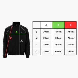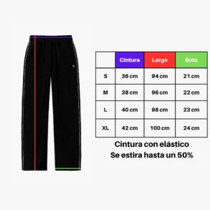 El modelo mide 1.82m, pesa 83kg y está usando talle L.