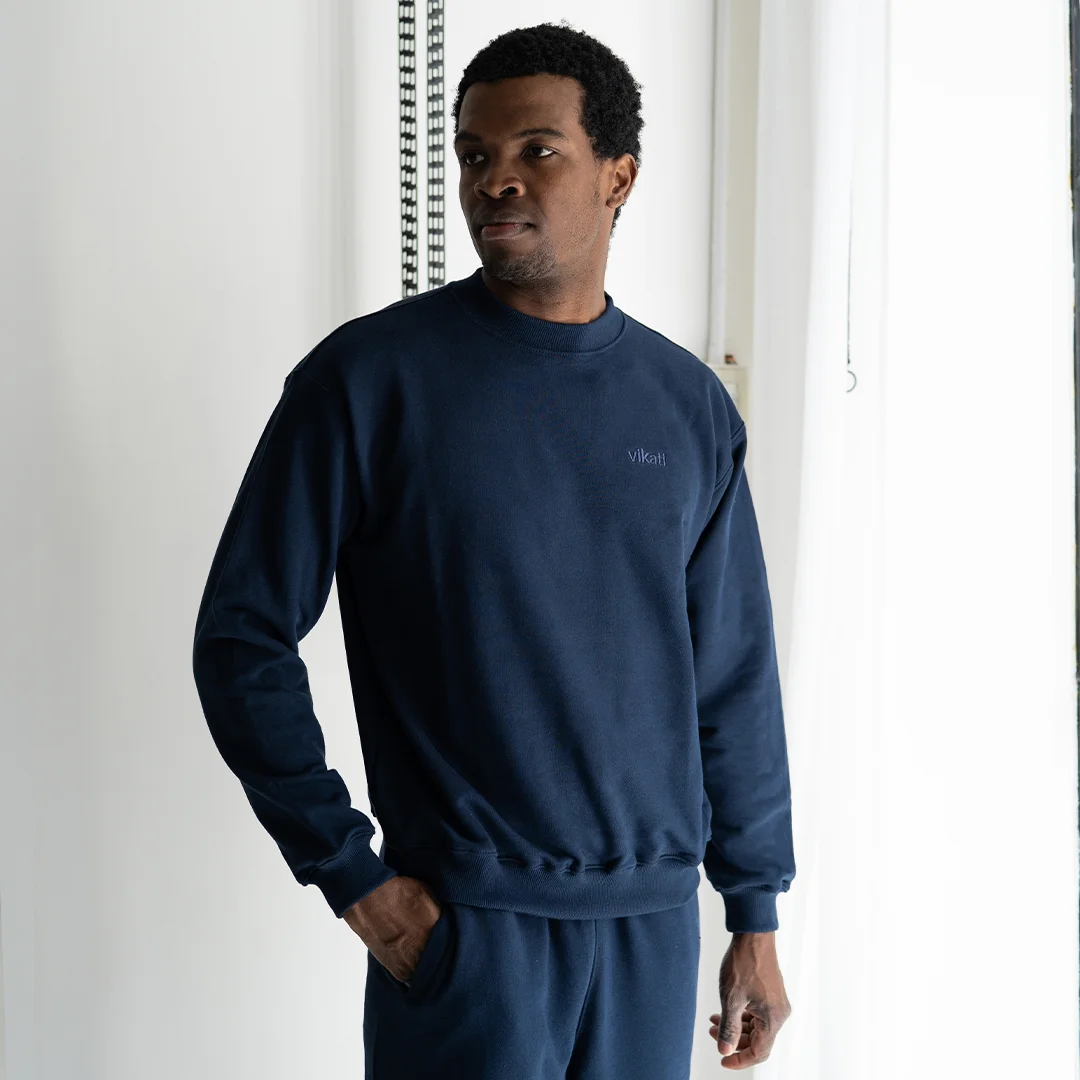 Crewneck VIKATI azul confeccionado en rústico de la mejor calidad, una prenda perfecta para entre estación. Cuenta con logo bordado VIKATI a tono, cuello de reeb y costuras reforzadas.