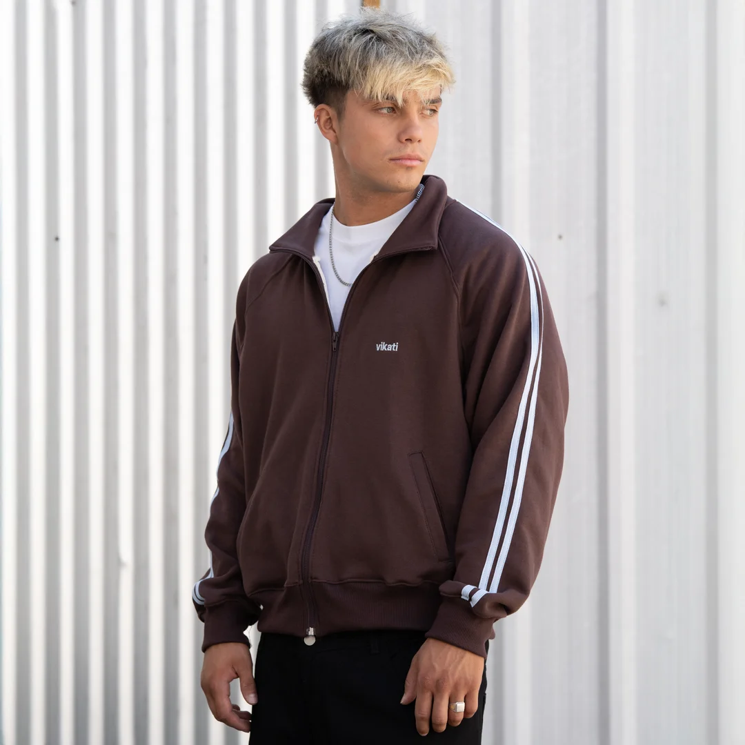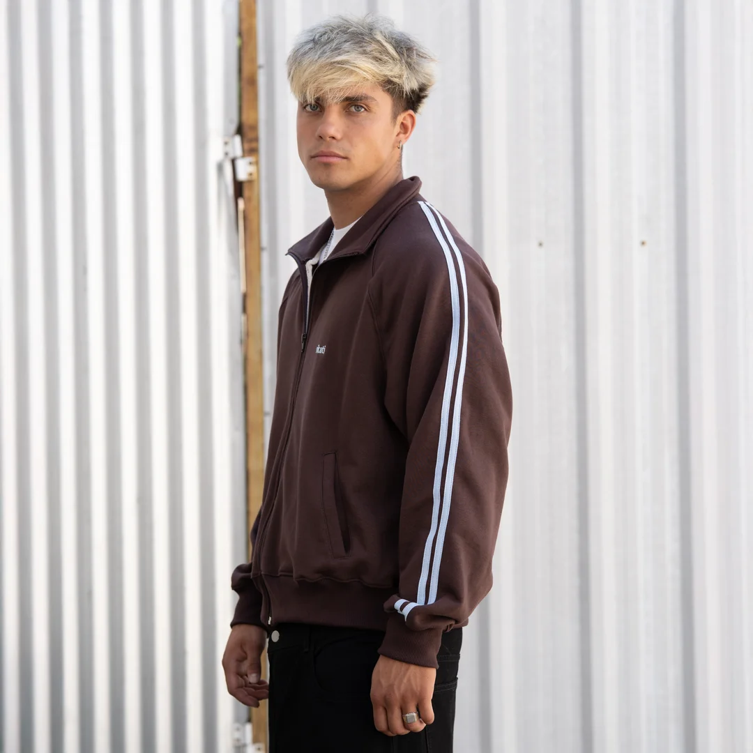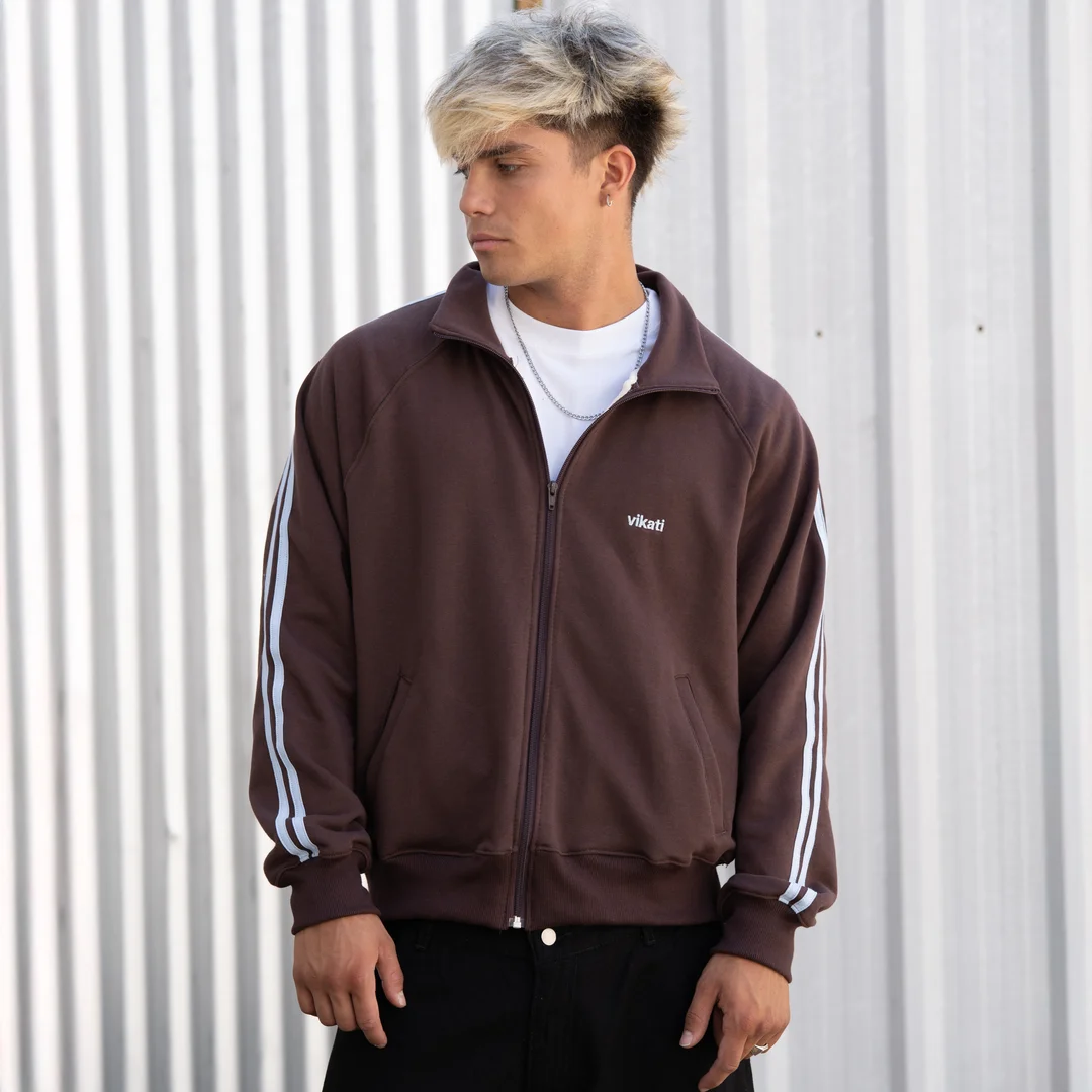 Track Jacket Choco y Celeste confeccionado en rustico de la mejor calidad, una prenda perfecta para entre estación.